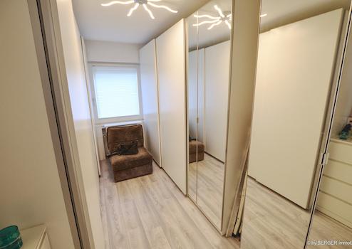 Über eine Holztreppe gelangen Sie ins Obergeschoss. Dort erwarten Sie zwei großzügige Schlafzimmer, eines davon mit kleinem Wintergartenanbau. Ein weiteres Zimmer – derzeit als Ankleide genutzt – lässt sich problemlos als Büro oder Kinderzimmer umgestalten. Das moderne Duschbad mit Fenster wurde 2023 erneuert und entspricht aktuellen Ansprüchen.