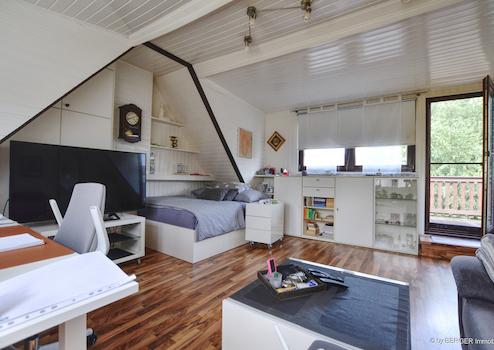 Das Dachgeschoss wurde zu einem hellen Studiozimmer mit Zugang zur sonnigen Dachterrasse ausgebaut – ein echtes Highlight der Immobilie.