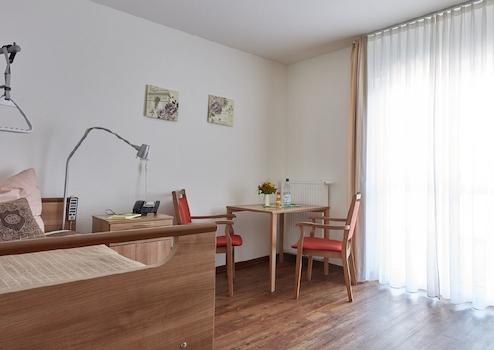Neben einem integrierten Notrufsystem stehen jedem Bewohner ein Pflegebett, Nachttisch, Tisch und Stühle sowie ein Kleiderschrank und eine Kommode zur Verfügung. Gerne können eigene Möbel mitgebracht werden, um das neue Zuhause so gemütlich und vertraut wie möglich zu gestalten. Telefon- und Fernsehanschluss sind im Zimmer vorhanden.