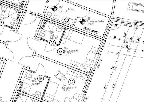 Die Gemeinschaftsfläche ist im Verhältnis zur Eigentumswohnung relativ groß, da ein Pflegeheim über Großküchen, große Speiseräume und viele Gemeinschaftsräume verfügt.