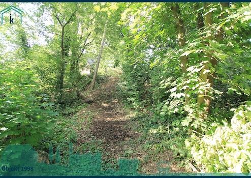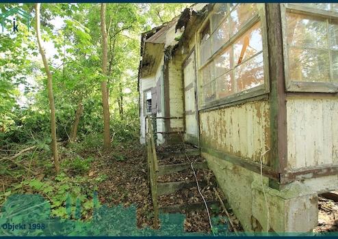 Auf dem Grundstück befindet sich viel Grün und ein altes Holzhaus (ca. 6 x 5 Meter) aus den 1930er Jahren, welches voll unterkellert ist. Das Niveau der Straße ist ca. 3 Meter über dem Niveau des Grundstückes.
