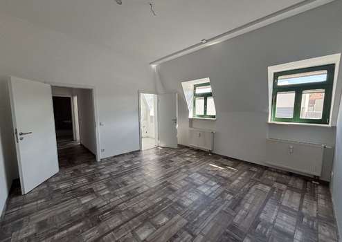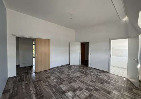- Großer Wohn- und Essbereich mit direkter Verbindung zum mittleren Gebäudetrakt (ehem. Wohnung 8) - bietet Potenzial für individuelle Nutzung oder Erweiterung