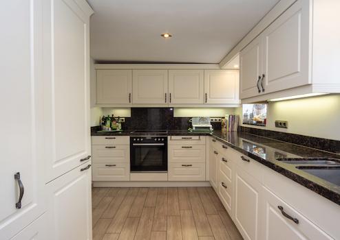 Innen erwarten Sie eine moderne Küche mit hochwertigen Geräten, zwei elegante Bäder mit bodentiefen Duschen, Kaminofen, Ölzentral- und Fußbodenheizung sowie Glasfaser-Internet. Eine Garage und ein PKW-Stellplatz runden das Angebot ab.