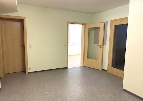 Die angebotene Wohnung liegt im Kellergeschoss eines Zweifamilienhauses. Die Wohnung besteht aus 2 Zimmern, einer Küche mit genug Platz für einen Essbereich und die Waschmaschine, ein Bad und einem Abstellraum (innerhalb der Wohnung). Das Bad ist mit einer Dusche ausgestattet, im Wohnzimmer befindet sich eine Fußbodenheizung. Als Bodenbeläge sind in der gesamten Wohnung PVC Böden vorzufinden, mit Ausnahme des Bades, das gefliest ist und dem Schlafzimmer, in dem die Eigentümer einen neuen Teppich verlegt haben. Auch in der Küche wurde ein neuer Laminatboden verlegt. Eine Küche ist in der angebotenen Wohnung nicht vorhanden, so dass der Mieter seine eigene Küche einbringen kann. Als Abstellmöglichkeit ist ein Abstellraum innerhalb der Wohnung vorhanden. Die Waschmaschine kann in der Küche oder wahlweise im Bad untergebracht werden.