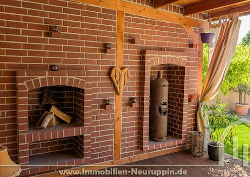 Außenbereich mit überdachter Terrasse, Sommerküche, Grillecke, offenem Kamin und fest installiertem Swimmingpool. Zusätzlich: Bürogebäude, Stall-/Scheunengebäude sowie Caravan- und Duplex-Carport. Ideal für Familien mit Platzbedarf.