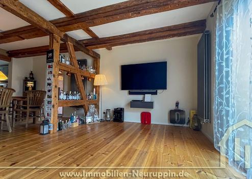 Charmantes Einfamilienhaus in Kerzlin (Temnitztal) auf ca. 1.912 m² Grundstück. Ca. 150 m² Wohnfläche im Erdgeschoss, ausgebautes Dachgeschoss, modernisiertes Bad mit freistehender Wanne, großzügige und helle Räume, sichtbare Fachwerk- und Holzelemente.