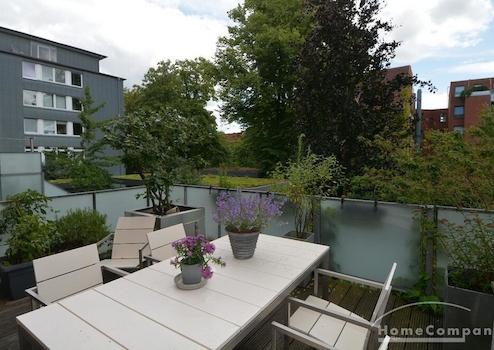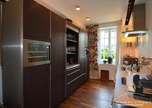 Sehr schöne Maisonettwohnung in zentraler City Lage in Kiel. Das Haus wurde vor kurzem aufwendig renoviert. Die Wohnung verfügt im oberen Stock über einen offenen Wohnbereich mit einem großen Esstisch und einer hochwertigen offenen Einbauküche mit allen Geräten inkl. Weinschrank. Auf dieser Etage befindet sich das Gäste WC und eine große Terrasse. In der unteren Etage befindet sich das große Schlafzimmer und das Duschbad mit einer bodentiefen Dusche, weiter ein sehr großer begehbarer Kleiderschrank. Hier findet sich auch das Arbeitszimmer mit einem großen Einbauschrank. Von unten erreicht man die untere Terrasse und den Garten und über einen Weg direkt den PKW Stellplatz. Die Wohnung verfügt über einen masiven Holzfussboden und eine Fußbodenheizung. Sie ist trotz der zentralen Lage sehr ruhig gelegen.