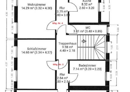 OG links: 2 Zi. Whg mit ca. 52 m² mit Küche, Bad und separatem WC