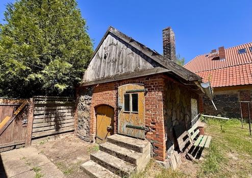 Auf dem Grundstück steht ein Stallgebäude, mit Platz zur Tierhaltung, für eine Werkstatt und eine Garage. Gleich neben dem Haus finden wir ein kleines Nebengebäude mit Gewölbekeller. Auf dem Grundstück können Sie Gemüse und Obst anbauen, Hühner halten und vieles mehr.