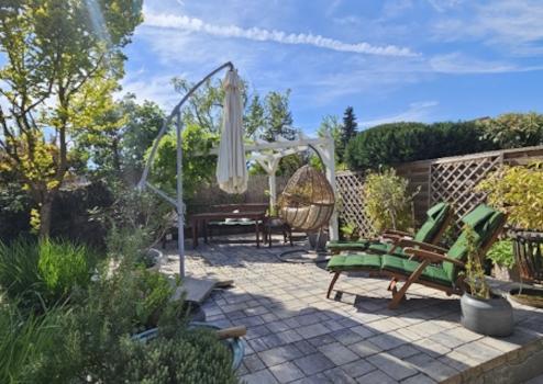 Das grosse Grundstück ist ebenfalls komplett neu gestaltet und bietet sowohl einen Vorgarten mit Garage, als auch einen grossen, sehr gepflegten hinteren Wohlfühlgarten mit separatem Sitzplatz, zusätzlich zur Terrasse. Ein schönes, massives Häuschen zum Feiern oder für Hobbys, sowie ein Brunnen zur Bewässerung runden dieses tolle Angebot ab.