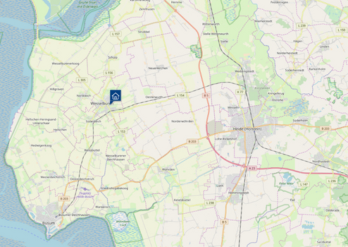 Das Grundstück befindet sich in einer guten Wohnsiedlung in ruhiger Lage. Fußläufig erreichen Sie sowohl die Schule und die Kindertagsstätte als auch die Einkaufsmöglichkeiten sowie Ärzte und Apotheke. Die Hebbel-Stadt Wesselburen ist eine Kleinstadt zwischen Büsum und St. Peter-Ording in Norderdithmarschen, welche durch das markante Bauwerk der St. Bartholomäus-Kirche schon von Weiten über die Marschenlandschaft sichtbar ist. Der Ort verfügt über sehr gute infrastrukturelle Rahmenbedingungen. Die Nordsee ist mit dem Auto in Kürze erreicht. Der Fußweg zu öffentlichen Verkehrsmitteln und dem Bahnhof beträgt wenige Minuten.