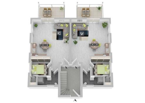 die visualisierten Grundrisse in diesem Exposé dienen nur der besseren Darstellung der Räume, kleine Abweichungen sind möglich. Die gezeigten Fotoaufnahmen stellen Musterfotos dar. Die tatsächlichen Baugegebenheiten ergeben sich aus der Baubeschreibung.