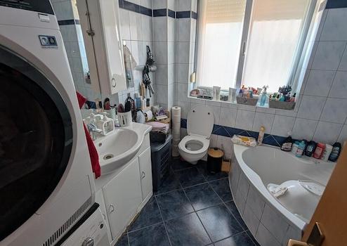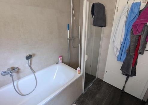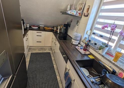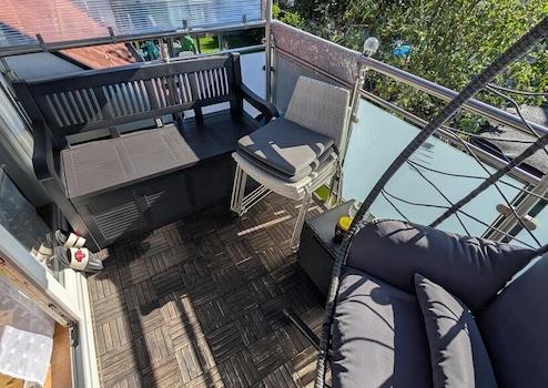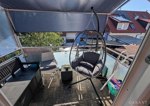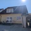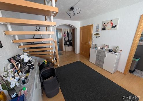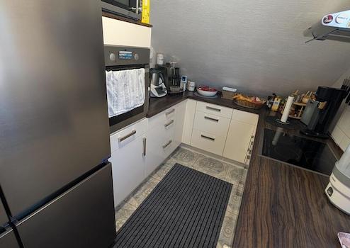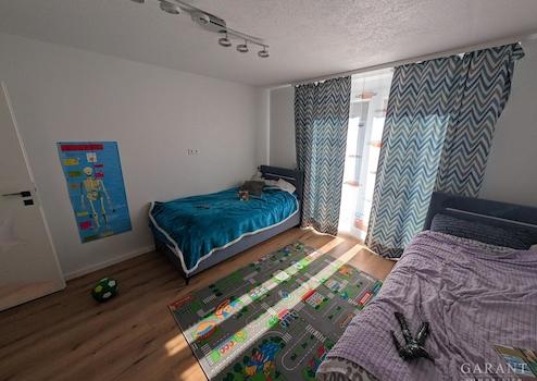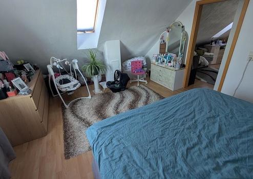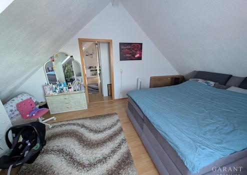 Im DG befindet sich eine etwa 78 qm große Wohnung mit Wohnzimmer, Schlafzimmer, Essbereich mit Küche, zwei Kinderzimmern, Badezimmer, Gäste-WC und Flur. Zwei Balkone mit schönem Ausblick sowie ein zusätzliches Kinderzimmer im Dachspitz runden das Angebot ab. Diese Wohnung ist aktuell monatlich für 1.200 Euro zzgl. NK sehr gut und langfristig vermietet.