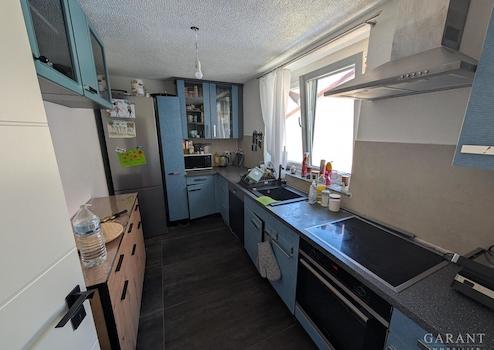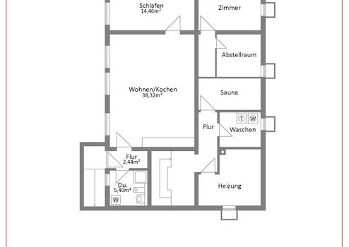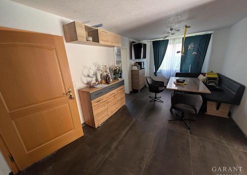 Die dritte Einheit im UG umfasst ca. 60 qm und besteht aus einem großzügigen Wohn- und Essbereich mit Küche, einem Schlafzimmer, einem Badezimmer und einem Flur.