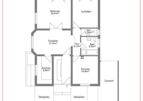 Ein Carport sowie zwei Stellplätze ergänzen dieses interessante Immobilienangebot.
