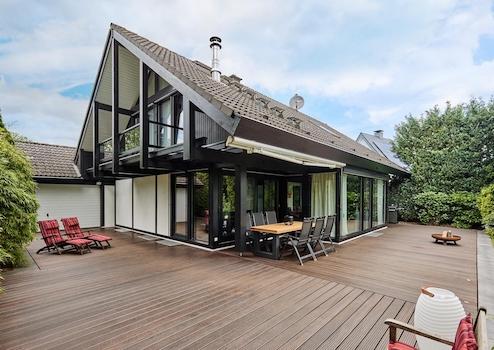 Willkommen! Ein luxuriöser Haustraum mit Ausblick, Natur, Großzügigkeit und Design erwartet Sie. Ein architektonisches Statement aus Holz und Glas über 3 Ebenen mit einem Ausblick in den eigenen parkähnlichen und uneinsehbaren Süd-Garten mit leichter Hanglage.