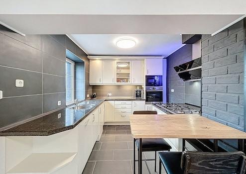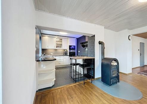 Voll unterkellert 54 m2, großes Balkon aus Douglasien Holz 18 m², Garage, Sauna, neue Fenster (2024), Holzofen und Öl Zentralheizung.