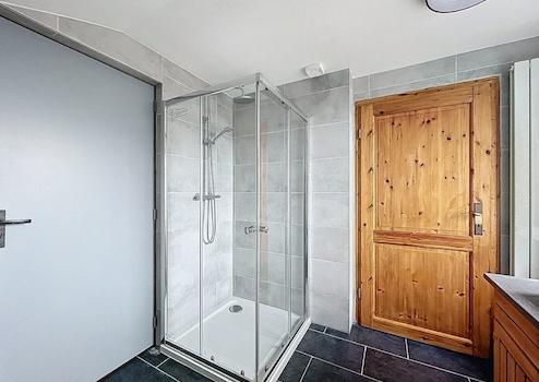 Gäste-WC mit Dusche und Waschmaschinenanschluss.