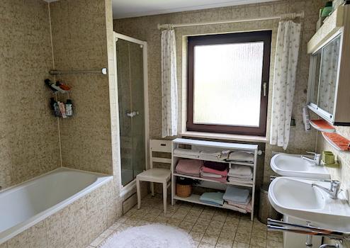 Das Haus ist funktional und gepflegt ausgestattet: In den Wohnräumen wurden Teppichböden verlegt, Bad und WC sind gefliest. Die Fenster sind doppelt verglast, für eine natürliche Verbindung zwischen den Etagen sorgt eine attraktive Naturholztreppe. Die im Preis enthaltene Einbauküche bietet direkten Einzugskomfort. Das großzügige Badezimmer verfügt über eine Badewanne, eine separate Dusche, ein WC und zwei Waschbecken. Beheizt wird das Objekt mit einer Gasheizung. Ein Glasfaseranschluss ist bereits bestellt. Insgesamt kombiniert die Ausstattung praktische Elemente mit solider Bausubstanz und sorgt für einen angenehmen Wohnkomfort.