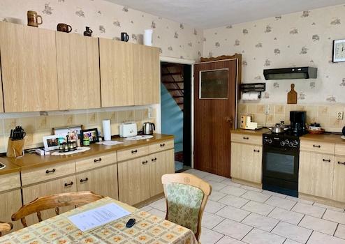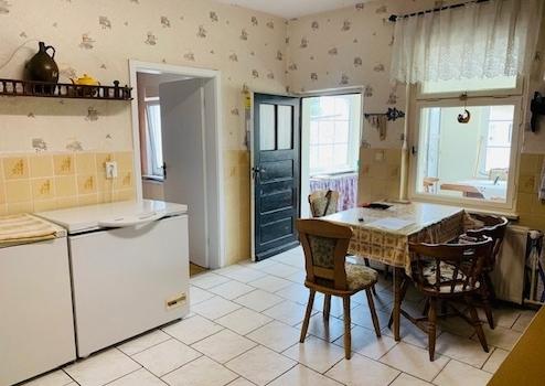 Mittelpunkt des Hauses ist die Küche mit Zugang zur Veranda und zum Hof. An den Schornstein kann sicher wieder eine Kochmaschine angeschlossen werden.