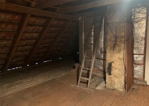 Im Dachgeschoss ist bisher nur die "Mädchenkammer" ausgebaut, weiterer großzügiger Wohnraum mit Blick auf die Wiesen und Felder kann hier entstehen.