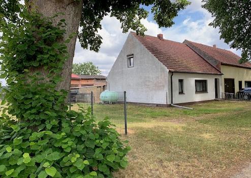 Zum Grundstück gehört ein kleines Nebengebäude mit Garage. Das Dach der Scheune wurde bereits erneuert. Bei Bedarf kann eine zusätzliche Fläche (Wiese ca. 1.800 m²) in der Nähe gepachtet werden.