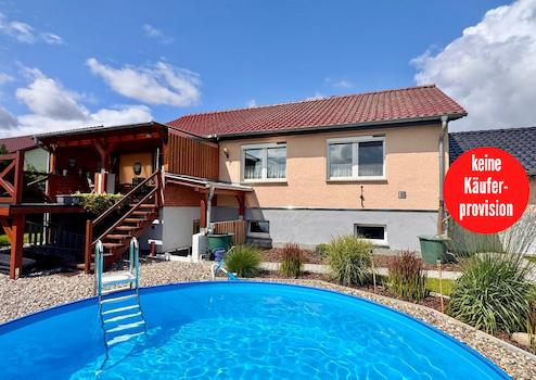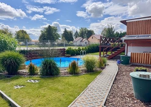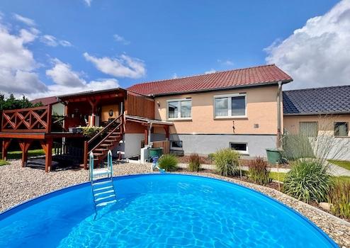 HORN IMMOBILIEN ++ RESERVIERT! Altentreptow, Haus mit Garage, Doppelcarport, Pool und Einbauküche