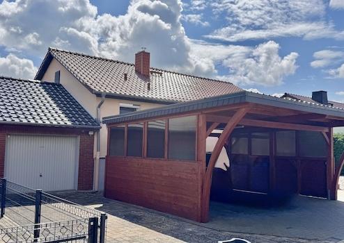 um Grundstück gehören eine Garage und ein Doppelcarport.