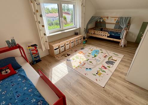 Im Dachgeschoss befinden sich drei Schlafzimmer, ein Bad mit Dusche, ein WC sowie auch ein Abstellraum.