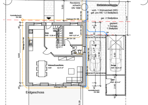 Das Grundstück ist ortsüblich erschlossen. Die Hausanschlüsse müssen durch den Erwerber erstellt werden. Die geplante Bebauung sieht ein großzügiges Wohnhaus 2-geschossig mit ausgebautem Dachgeschoß in einer Größe von 9 x 9 m vor. Es ist keine Bauverpflichtung