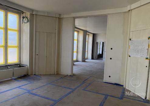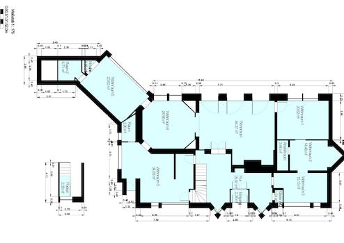 - alle Geschosse sind zurückgebaut worden (Erwerb im Rohbaustadium), nichttragende Wände lt. aktueller Grundrissplanung wurden bereits gesetzt, teilweise gesicherte originale Fenster und Parkett