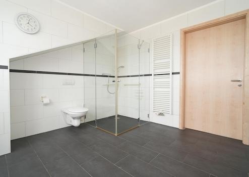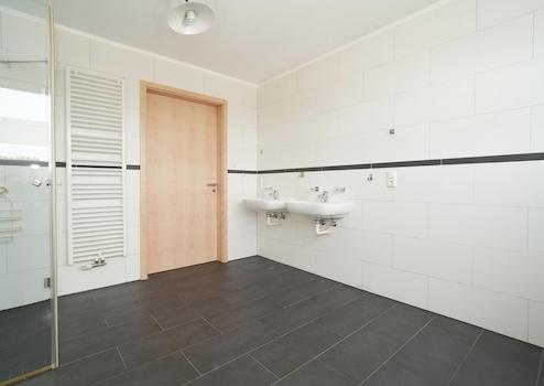 - Tageslichtbad mit Doppelwaschtisch, ebenerdiger Dusche, Platz für Waschmaschine und Trockner