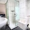 Das Tageslichtbad mit Dusche befindet sich hinter dem Wohnbereich.