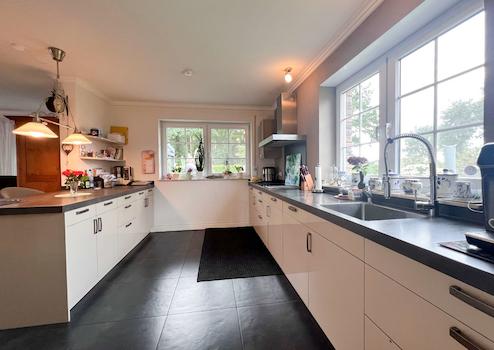 Hochwertige Einbauküche mit Markengeräten – inklusive moderner Elektrogeräte, die Kochen und Backen zu einem Vergnügen machen. Von der energiesparenden Spülmaschine bis zum leistungsstarken Induktionskochfeld ist alles bereits vorhanden.