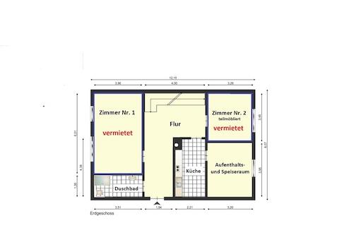 WG-Zimmer 4 Mtl. Warmmiete EUR420,--Wohnfläche m² ca.19 m² / teilmöbliert - vermietet!