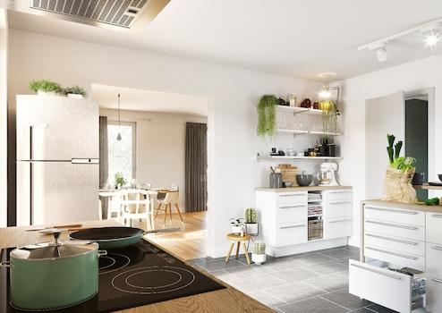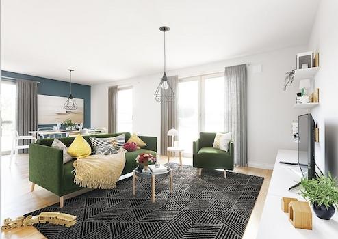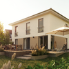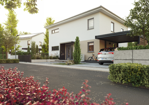 Unsere große Stadtvilla Flair 152 spiegelt mit seinen klaren Linien das urbane Lebensgefühl seiner Bewohner wieder. Sie überzeugt mit einem cleveren Grundriss und einer schicken, modernen Optik. Zentrum des Familienlebens ist das helle und geräumige Wohnzimmer mit gemütlichem Essbereich. Von hier aus können Sie direkt in die offene Küche blicken und schauen, was in den Töpfen köchelt. In der Küche haben Sie genug Platz für gemeinsame Kochabende mit den Liebsten oder ein schnelles Frühstück unter der Woche. Wer hin und wieder lieber im Home-Office arbeitet, kann sich neben dem Wohnzimmer ein großzügiges Arbeitszimmer einrichten. Auch das Obergeschoss zeigt sich im gradlinigen Baustil des Hauses. Hier finden Sie ein Schlafzimmer mit geräumiger Ankleide und wahlweise zwei oder drei zusätzliche Zimmer (6 Zimmer möglich), die Sie nach Ihren Vorstellungen als Schlaf-, Kinder- oder Gästezimmer nutzen können. Große Fenster lassen auch hier viel Tageslicht hineinströmen. Das Stadthaus Flair 152 ist gradlinig und schick - einfach optimal für das moderne Wohnen in Stadtnähe.