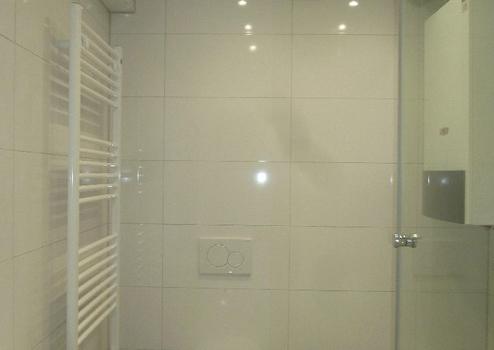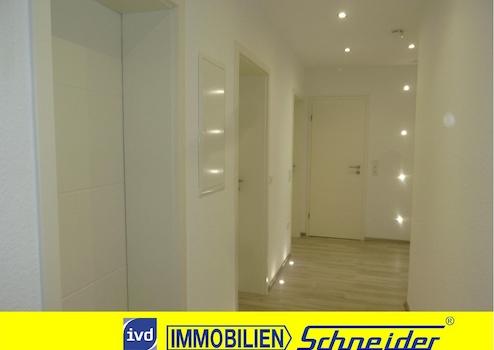 Renoviert, Flur und Bad mit abgehängter Decke und Niedervoltbeleuchtung, helles Laminat, LED-Fußboden-/und Wandbeleuchtung im Flur, Thermopenfenster, Gastherme.