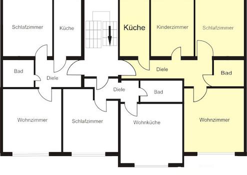 3 Zimmer + Küche + Diele + Badezimmer.