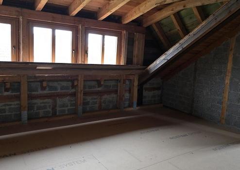 * obere Geschossdecke wurde gedämmt mit Holzwolledämmplatten