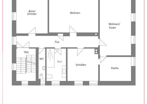 DG: ca. 115,34 qm, 3 Zi, Kü, Bad, Flur