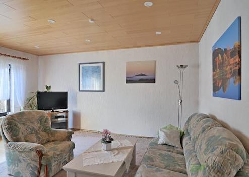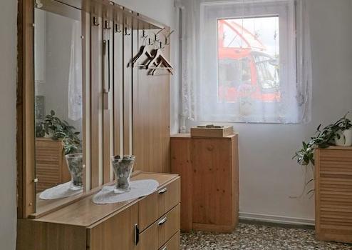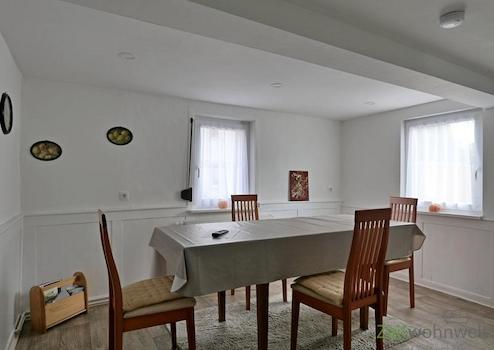 ### Please note the availability date! Bitte das Verfügbarkeitsdatum beachten! ### möbliertes Wohnhaus in Apfelstädt bei Arnstadt mit eigenem Grundstück; PKW-Stellplätze im Hof, überdachter Sitzplatz am Hauseingang; untere Etage: großes Wohnzimmer mit Sofa, Sesseln, Schrankwand und TV; großes Bad mit 2x Waschbecken, Dusche, Wanne, WC und Waschmaschine; separate Küche; separates Esstimmer; Hausflur mit Garderobe; Obergeschoss; zwei fast identische Schlafzimmer mit Doppelbett und Kleiderschrank, Gäste-WC und Flurbereich (Wichtig: im Obergeschoss beträgt die Deckenhöhe teilweise nur 1,90m!); Dachgeschoss: großer Wohnraum mit offenen Dachbalken, großes Sofa, TV, Leseecke mit zwei Sesseln; WLAN inklusive; die angegebene Miete von 1.500,00 Euro (bei 1 Person) setzt sich zusammen aus Pauschalmiete 1.150,00 Euro zzgl. NK-Vorauszahlung 350,00 Euro für Strom, Gas und Wasser; wird an max. 4 Personen vermietet; Kaution 3.000,00 Euro; Mindestmietdauer 3 Monate; Endreinigung Mietersache; Pflichtangaben zum Energieausweis: Energieausweis gültig bis: 09.01.2033; Baujahr Gebäude: 1870; Energieausweis: nach Verbrauch; Energieverbrauch: 98.63 kWh/(m²a); Energieeffizienzklasse: C; Primärer Energieträger: Erdgas