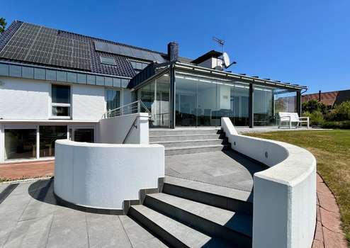 - Terrasse, Wintergarten und Pool auf der Südseite mit Blick in die Natur