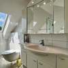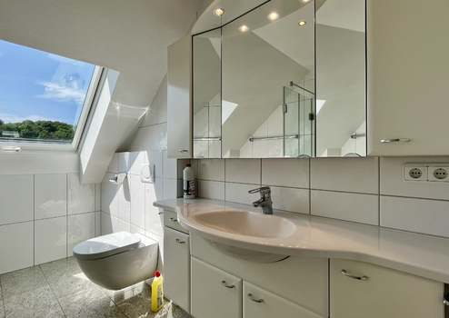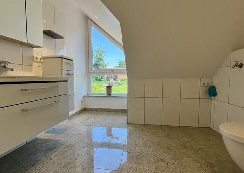 Das Obergeschoss mit ca. 125 m² Wfl. kann als eigenständige Wohneinheit genutzt werden. Es verfügt über zwei Badezimmer mit Dusche u. bietet jeweils funktionale Ausstattung bei angenehmer Tageslichtversorgung.