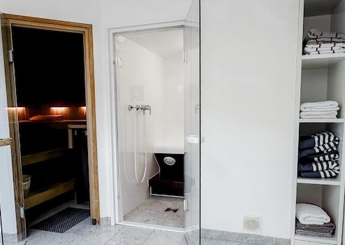 Der Wellnessbereich bietet eine finnische Sauna, ein Dampfbad, einen Ruheraum, einen Duschraum sowie ein WC. Durch die Oberlichtfenster gelangt viel Tageslicht in den Spa- Bereich. Die Ausstattung erfüllt gehobene Ansprüche und ermöglicht Erholung auf hohem Niveau.