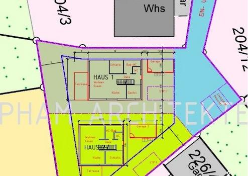 Der Bauplatz ist sowohl für ein Einfamilienhaus als auch für zwei Einfamilienhäuser geeignet.