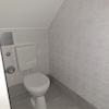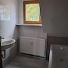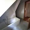 Das Tageslicht-Badezimmer ist mit einer Badewanne ausgestattet. Das WC verbirgt sich hinter einer Mauer in einem separaten Abteil.