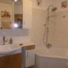 Das innenliegende Badezimmer verfügt über eine Eckbadewanne mit Duschvorrichtung.