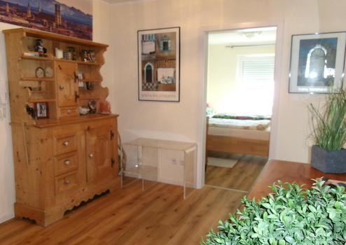 Die Wohnung befindet sich auf der Rückseite des Hauses mit Südwest Balkon und Blick in den Garten.