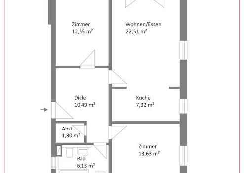 Diese 3 Zimmer-Wohnung liegt im 1. Obergeschoss und ist bequem über dem Aufzug zu erreichen.