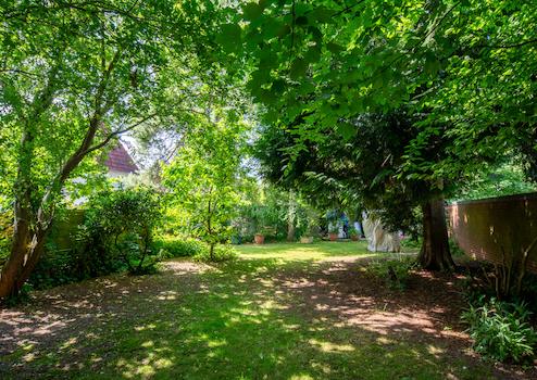 Der große Garten lädt zu Freizeit, Spiel oder kreativen Projekten ein – inklusive seltener Stellplatzmöglichkeit direkt auf dem Grundstück.
